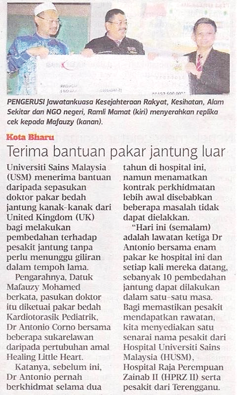 Majlis ini diadakan untuk menghargai sepasukan doktor pakar bedah jantung kanak-kanak dari United Kingdom (UK) yang telah melakukan pembedahan pesakit jantung tanpa perlu menunggu giliran dalam tempoh yang lama. Pasukan doktor ini diketuai oleh pakar bedah paediatric cardiothoracic, Dr. Antonio Corno yang merupakan bekas doktor USM.